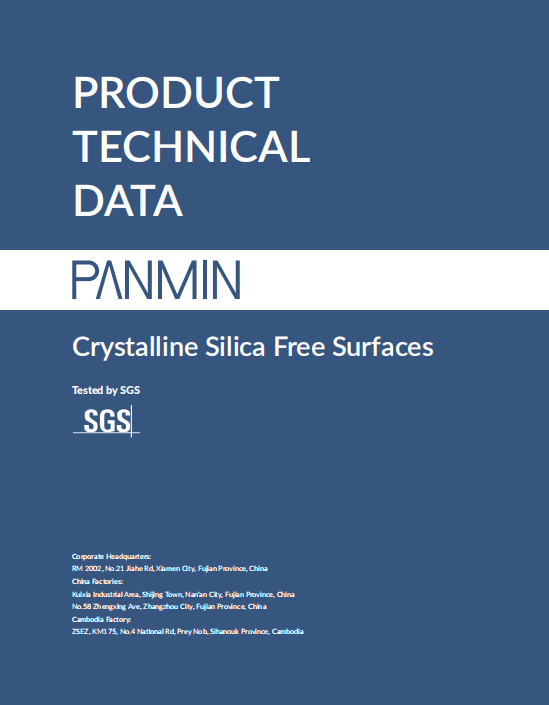 Download our product technical information today and immerse yourself in the world of PANMIN's Crystalline Silica Free Surfaces, where innovation harmonizes with safety and aesthetic sophistication. Crafted for unmatched excellence, our surfaces are at the forefront of industry benchmarks, achieving distinguished certifications and surpassing stringent SGS testing standards. At the core of our offerings is a dedication to safety, environmental conservation, and the use of sustainable materials; the report shows that test for Crystalline Silica content detected no characteristic peaks, and made from premium recycled materials and minerals, we guarantee a safer environment for fabricators. Experience the extraordinary resilience, eco-friendliness, and beauty of our surfaces for your upcoming projects. Explore the future of surface design, carefully curated for superior safety and ecological balance.