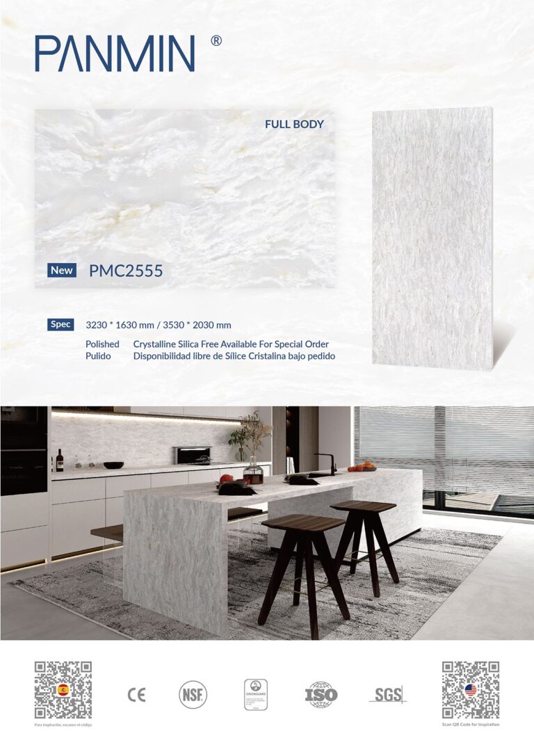 PANMIN proudly presents PMC2555, a beautifully crafted quartz surface designed to elevate any space. With its full-body design, PMC2555 offers a soft, elegant texture that flows naturally across the slab, creating a seamless and sophisticated look. The subtle blend of grey and delicate patterns evokes a sense of calm and refinement, making it ideal for modern and classic interiors alike.