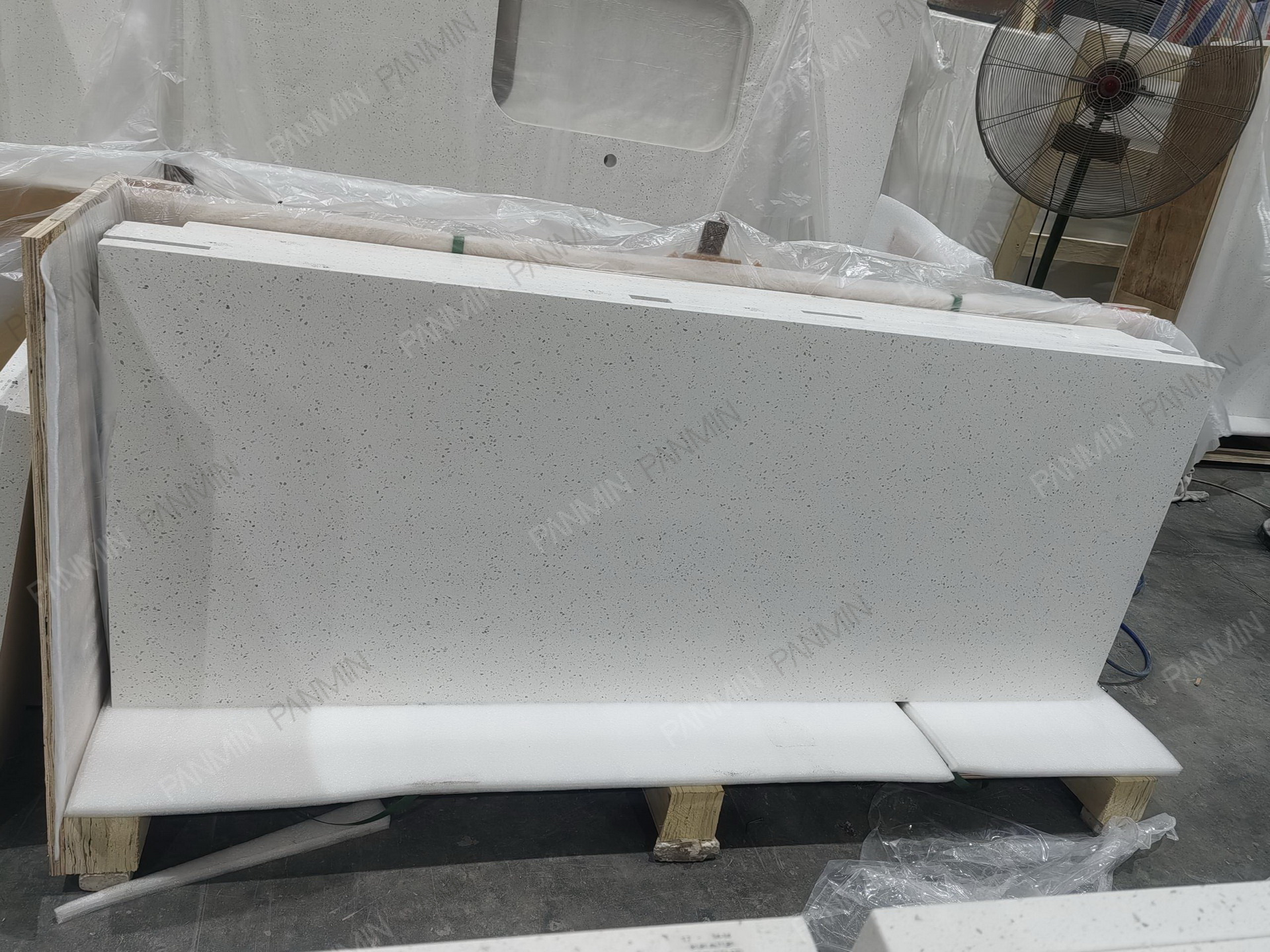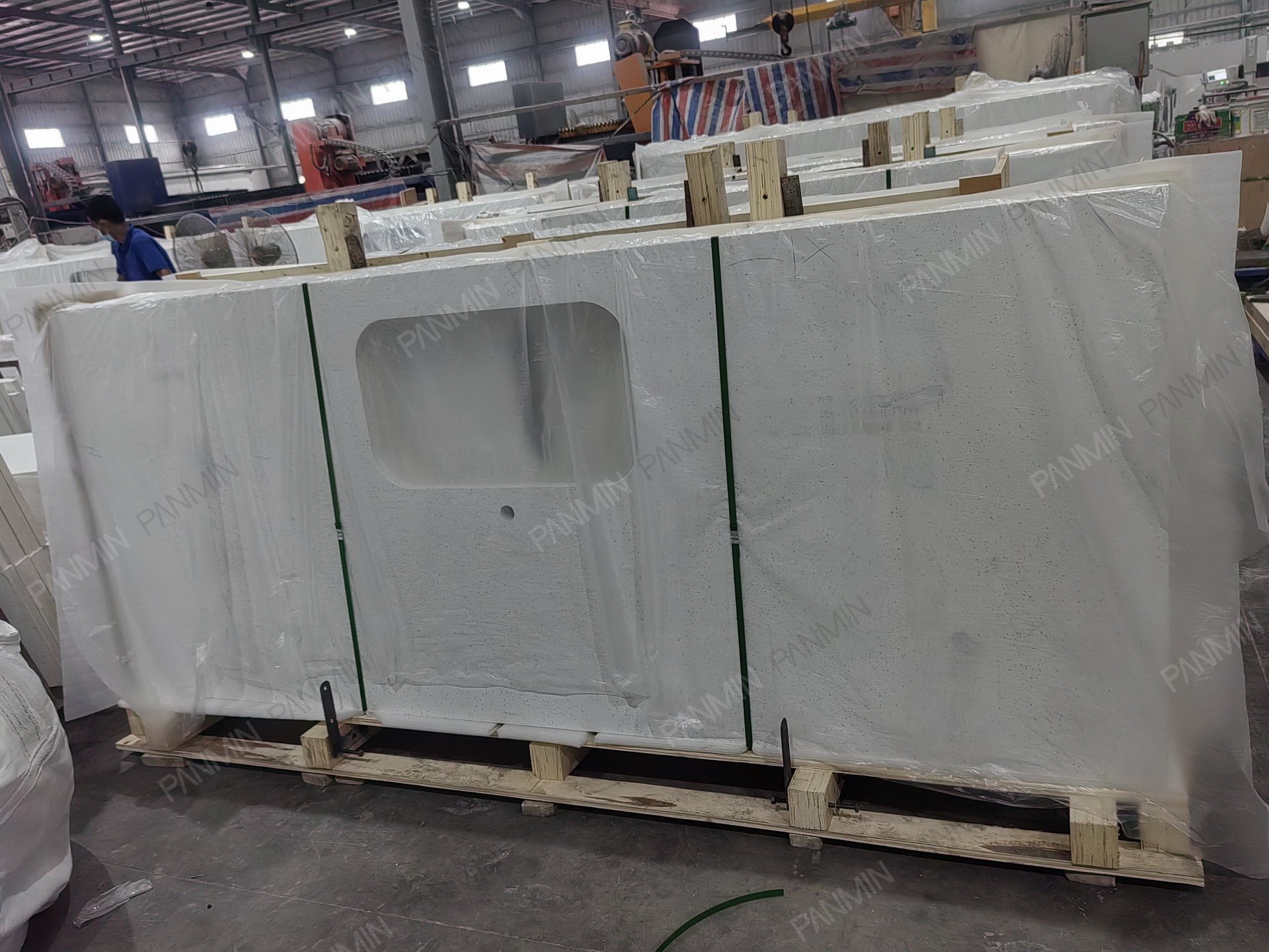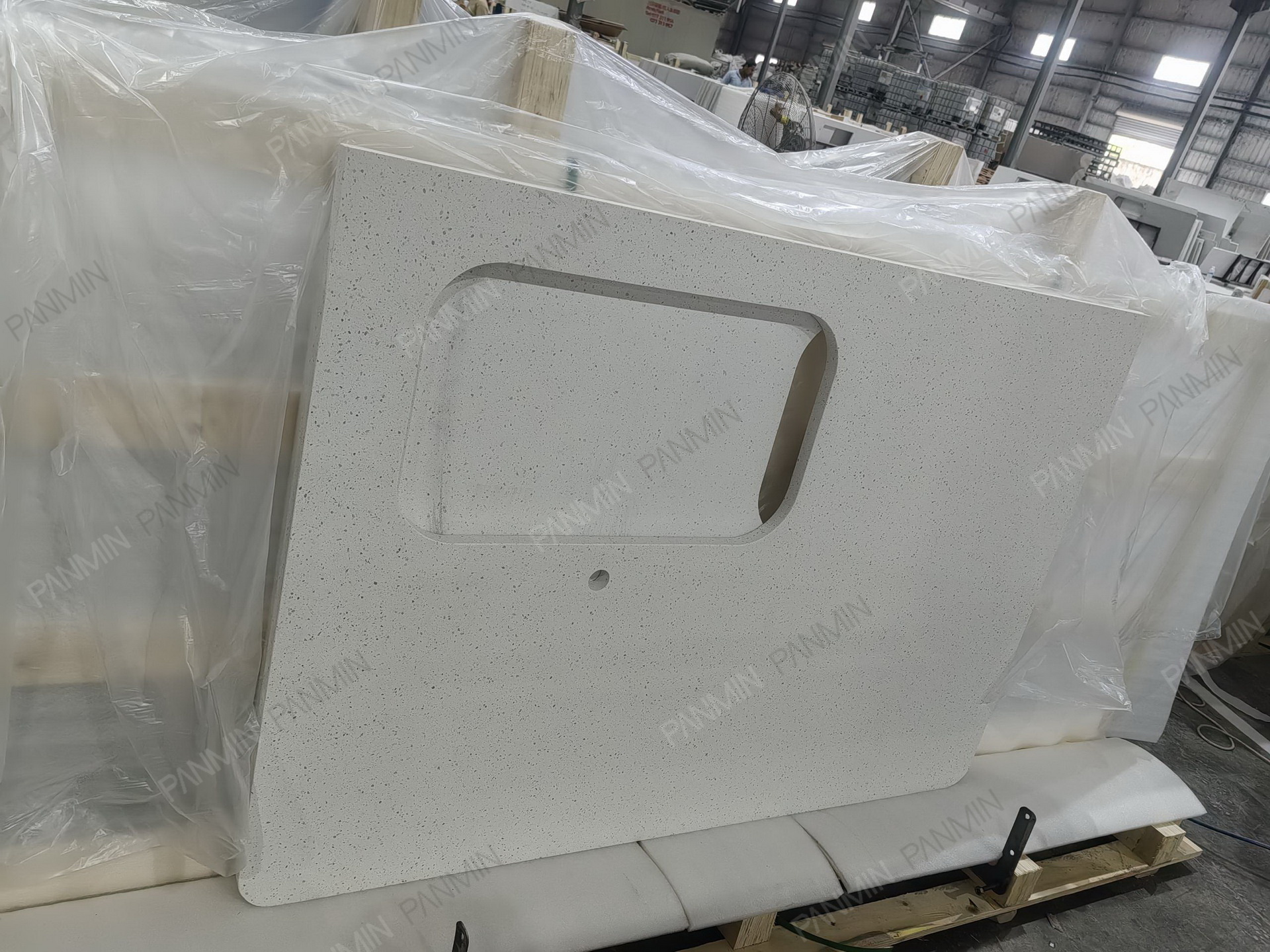 Another multi-family residential project produced in Cambodia features Quartz PMQ1910GJ from PANMINQUARTZ. This quartz contributes to the overall design and longevity of the apartment spaces, making it an ideal choice for multi-family living.