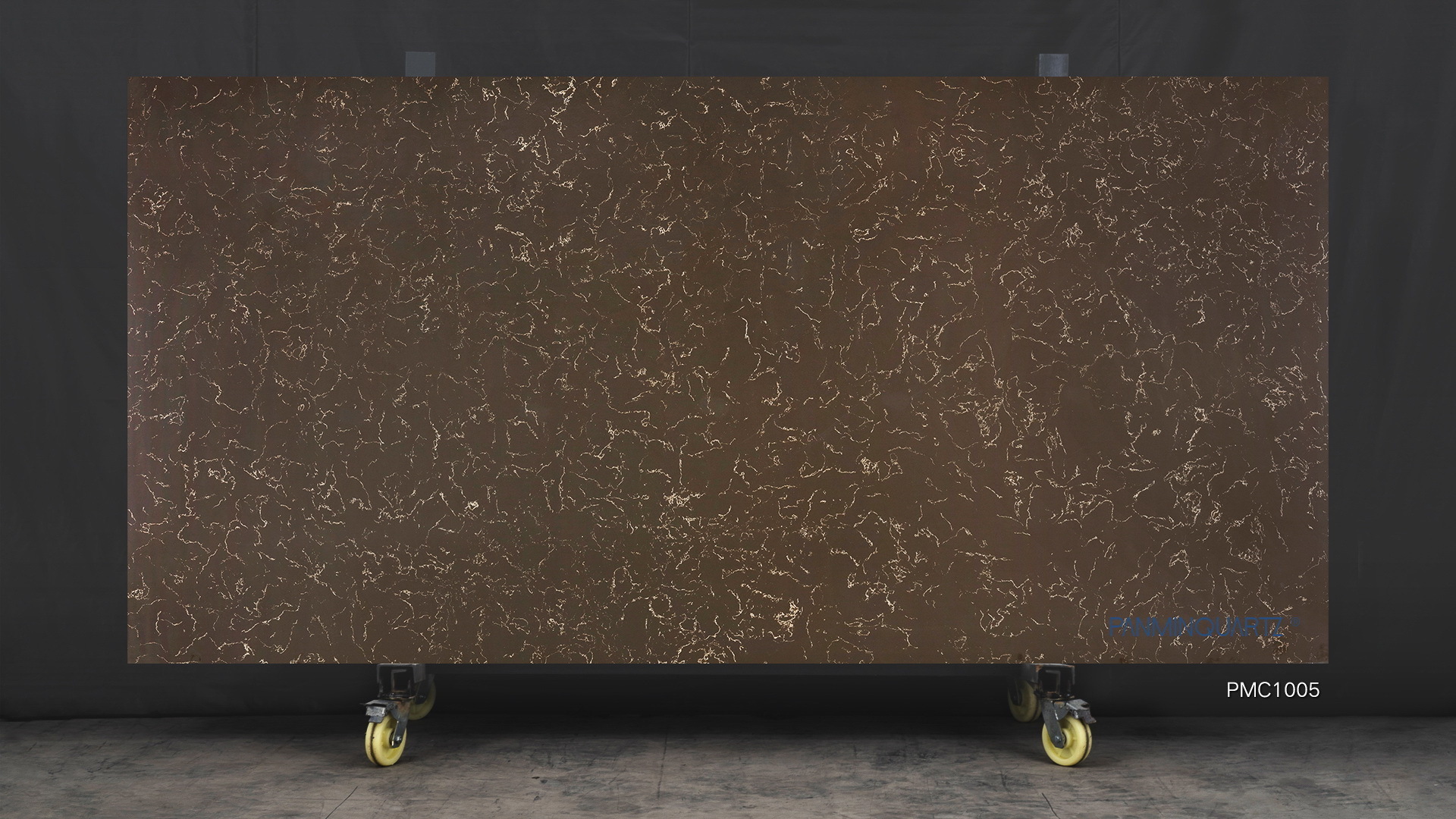 A proud member of the natural collection, PMC1005 exudes a rich brown elegance. Ideal for vanities, showers, and desks, this slab features a distinctive veined quartz pattern, adding a touch of natural beauty to any setting.