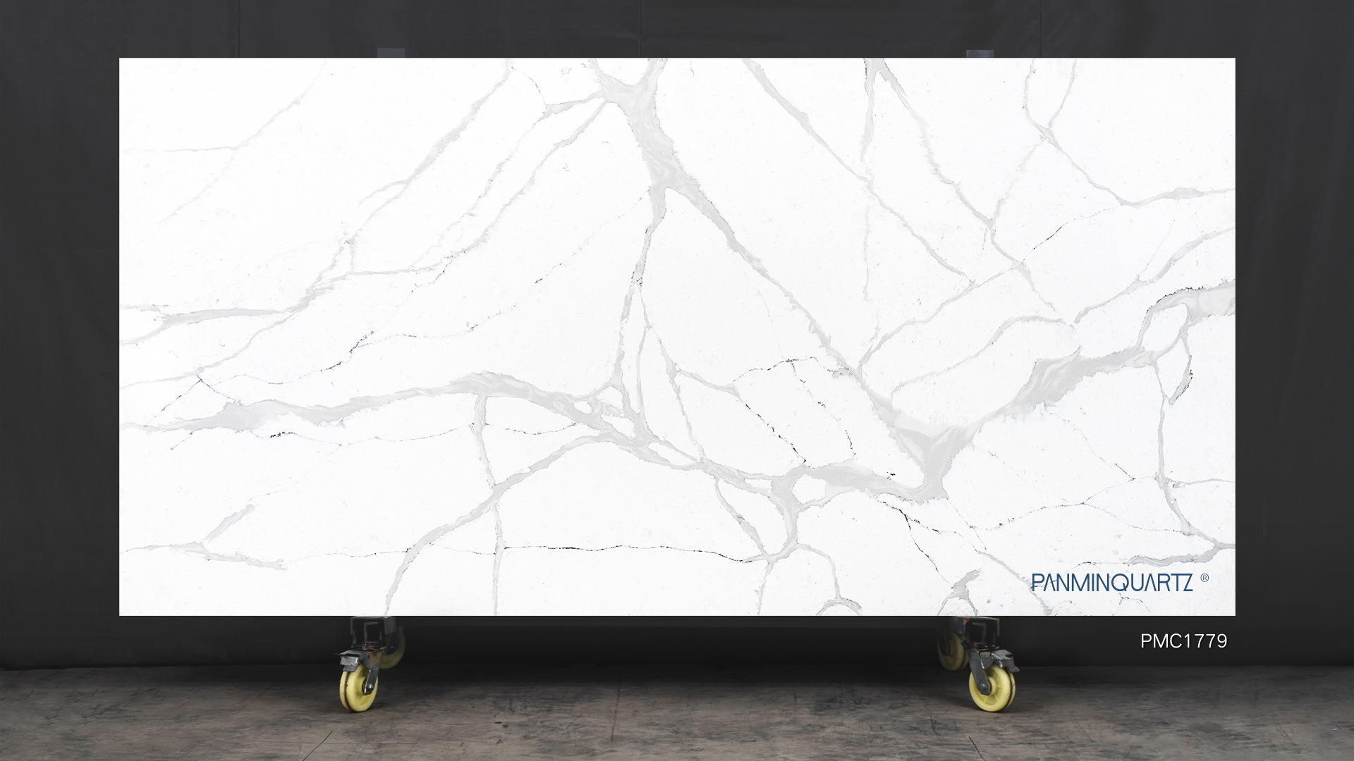 PMC1779 offers a white and grey veining design, creating a marble-like appearance. This slab is perfect for luxurious interiors and high-end applications.