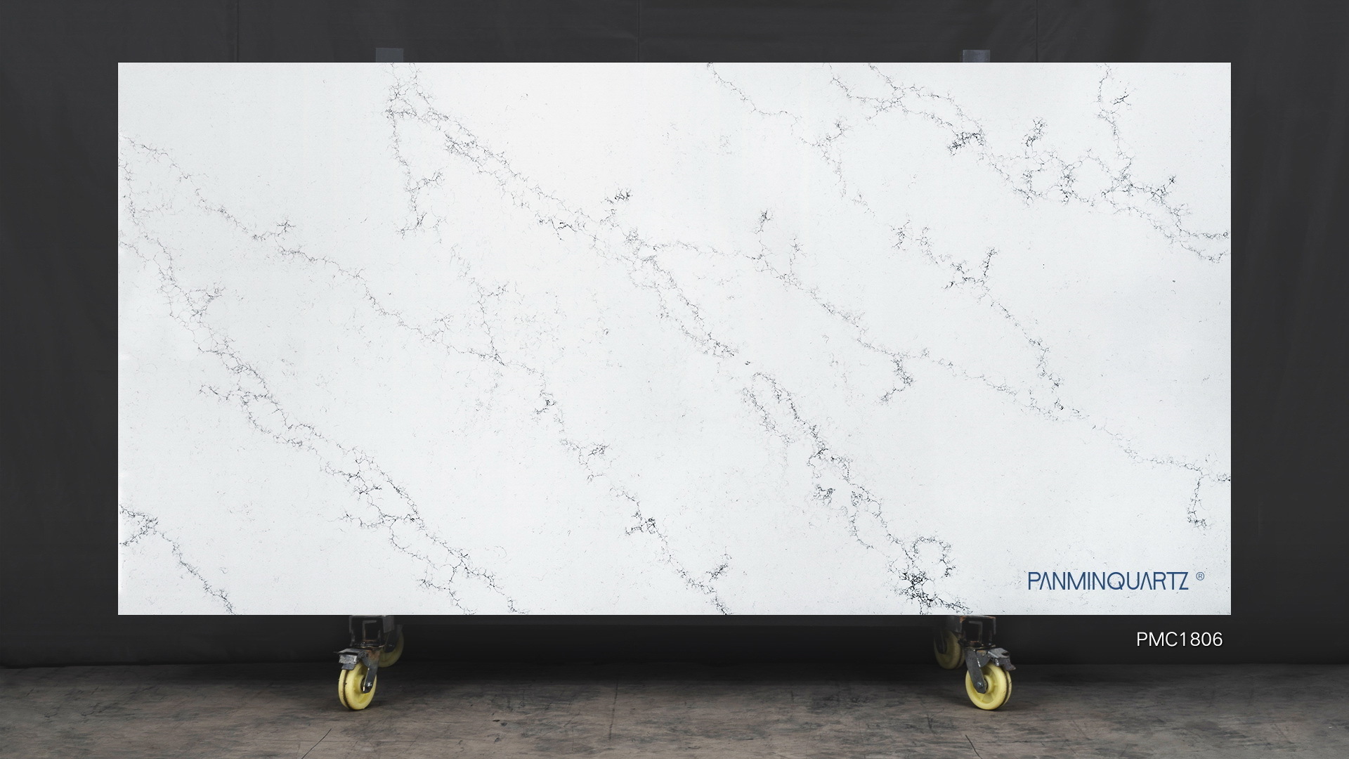 PMC1806 features a sophisticated white and grey veining pattern, creating a marble-like appearance ideal for elegant interiors and luxury designs.