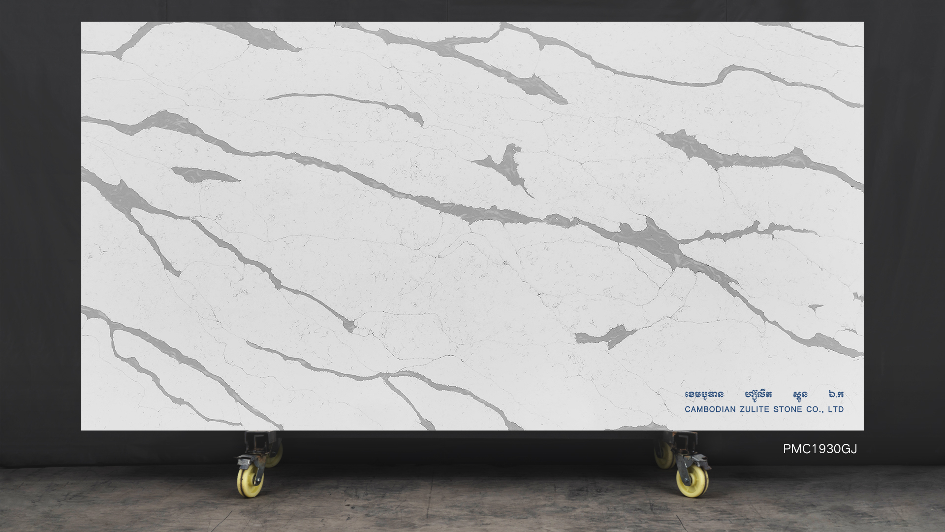 PMC1930GJ offers a sophisticated white and grey Calacatta design, ideal for luxurious interiors and statement pieces. Its veining pattern mimics the beauty of natural marble, adding elegance to any space.
