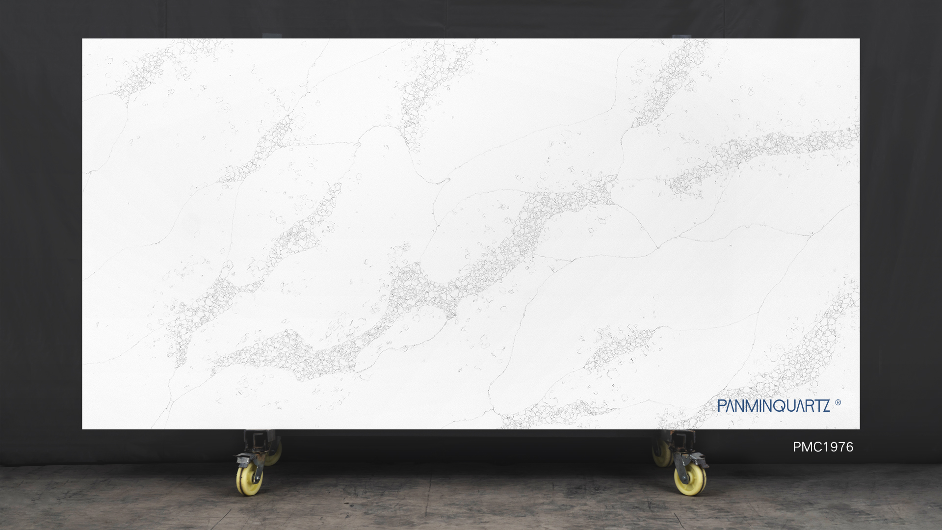 PMC1976 features a sleek white and grey veining design, creating a sophisticated marble-like appearance. Perfect for modern and luxurious interiors, this slab adds elegance and style.